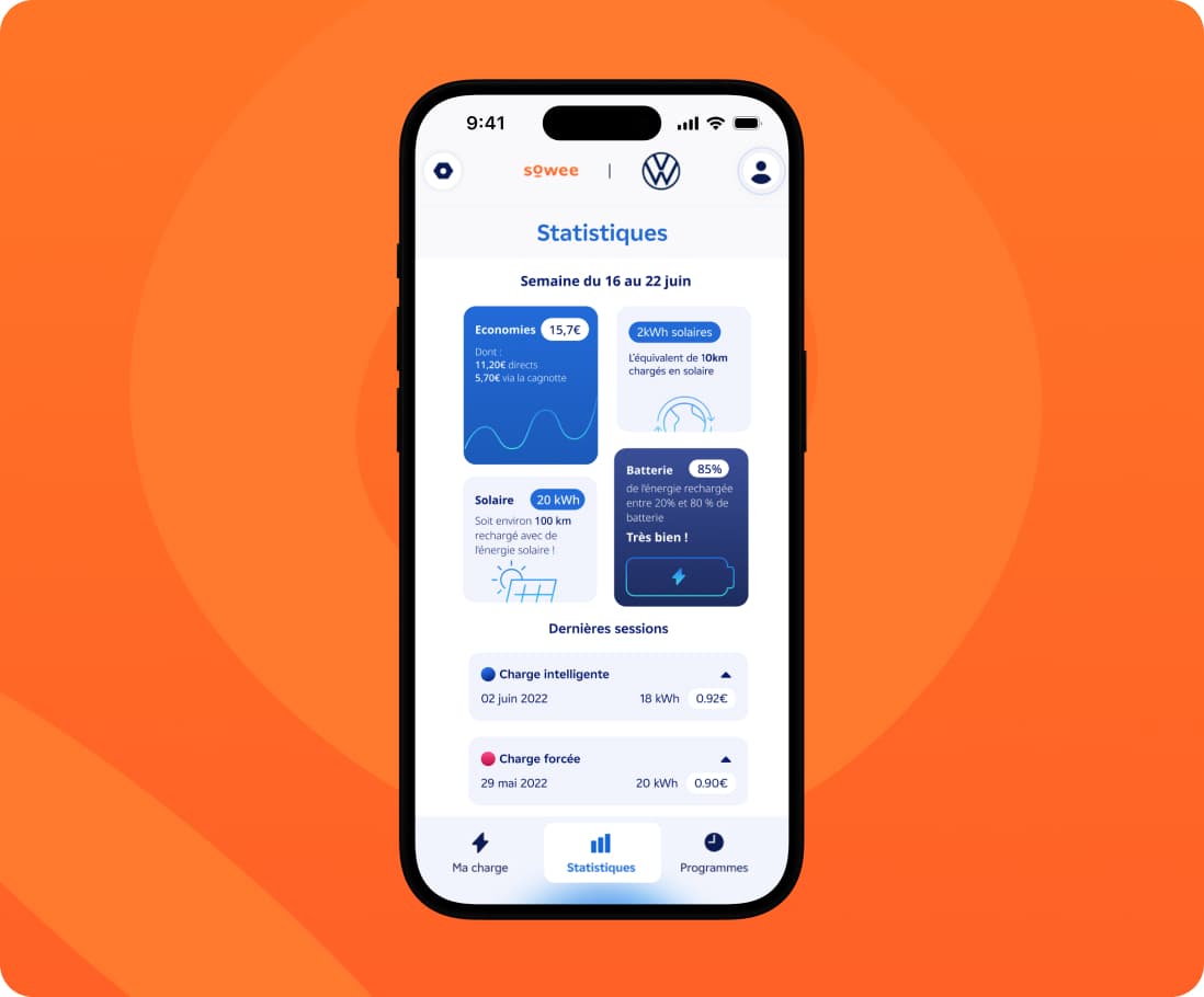 - Vous renseignez vos préférences de charge depuis l'appli Sowee Smart Charge et l’intelligence artificielle gère automatiquement la recharge aux meilleures conditions. La priorité est donnée à vos impératifs. Votre véhicule sera rechargé, quoi qu’il arrive.